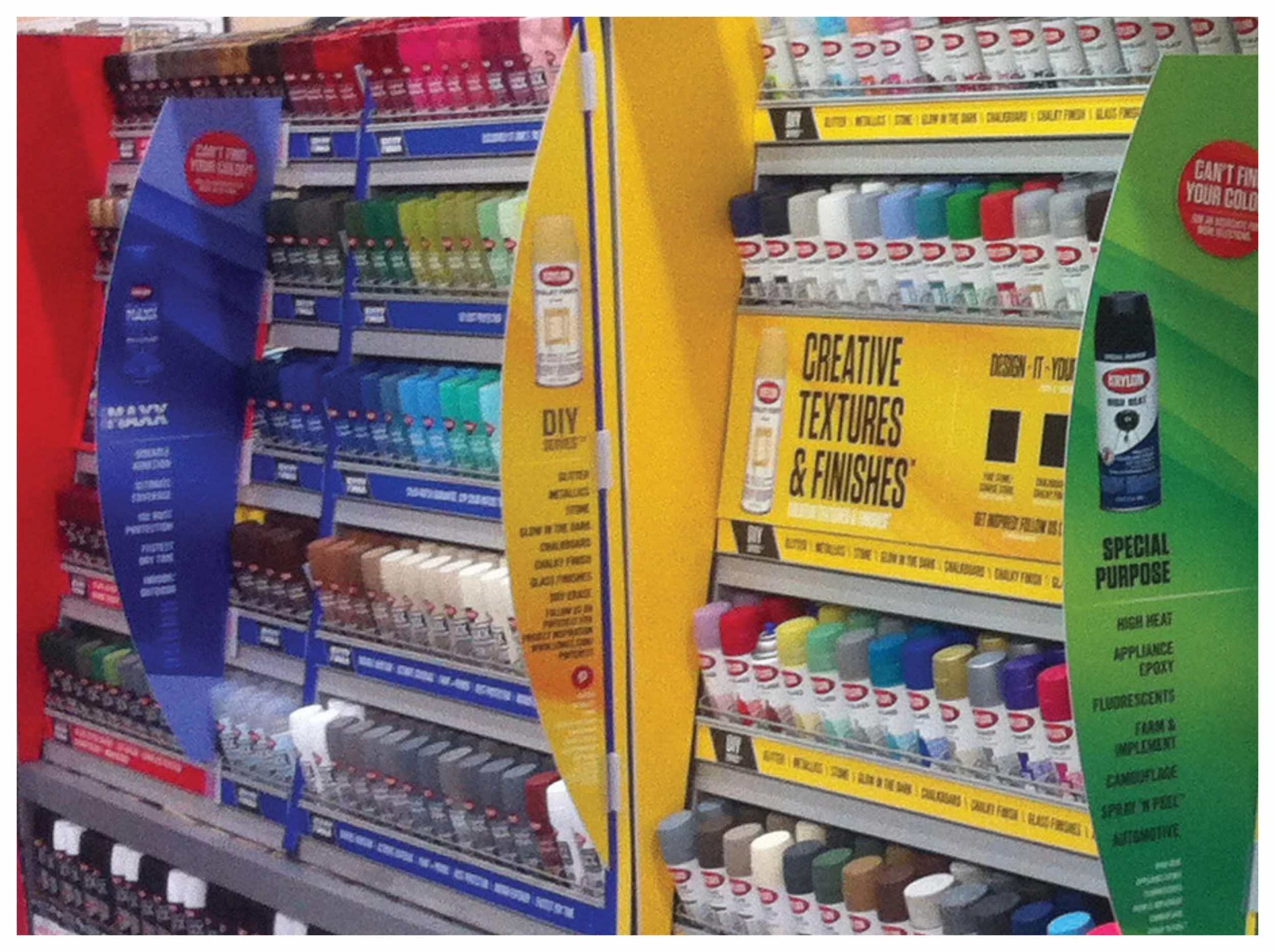 25 foot store-within-store merchandiser developed for Lowe’s to assist all D.I.Y. customers in finding the right spray paint.